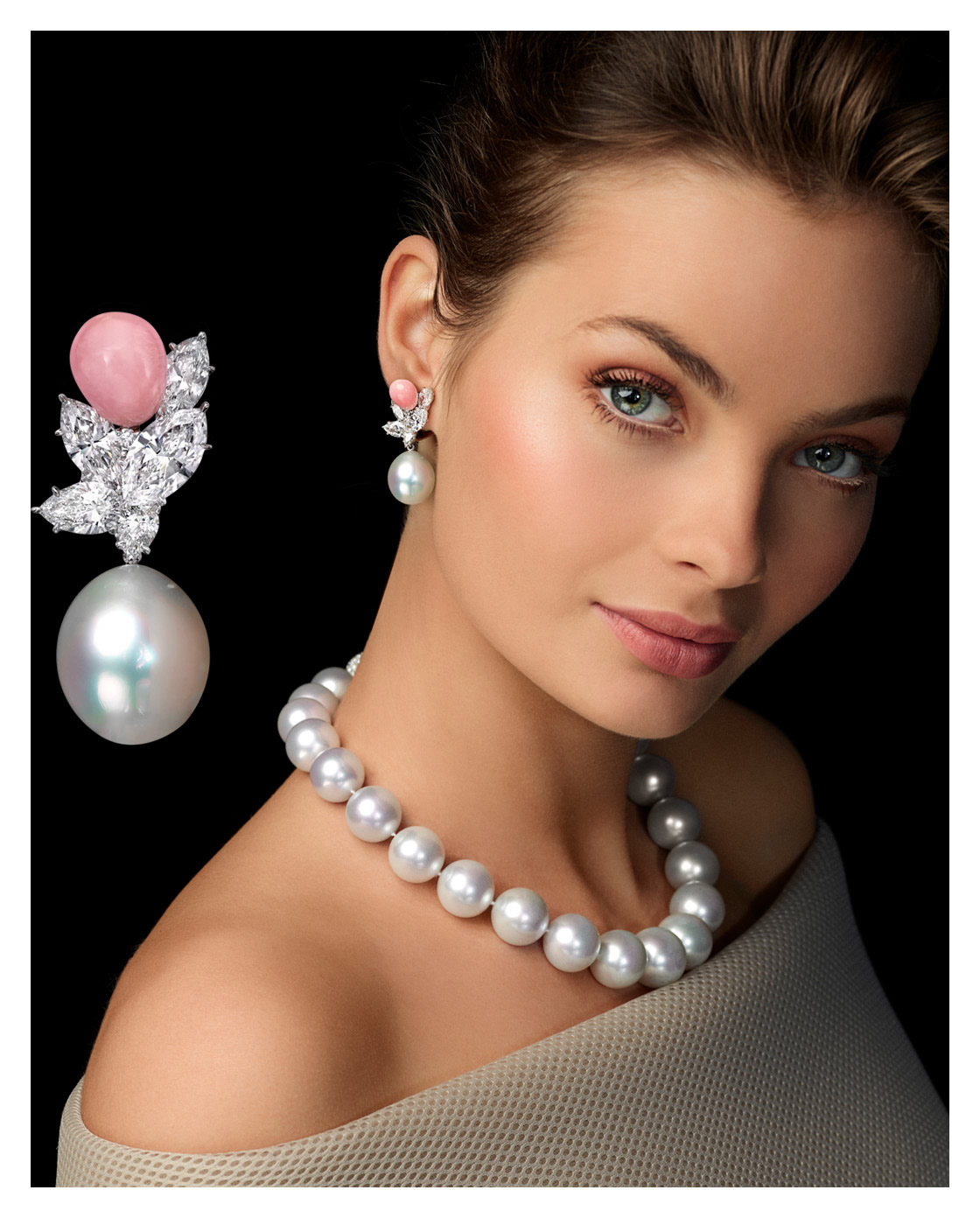 Convertible Earrings. Natural Conch Pearls in Platinum, Marquise and Pear-shape Diamonds, 8.00 cts, Removable South Sea Pearl Drops, 17.2 x 14.8mm.