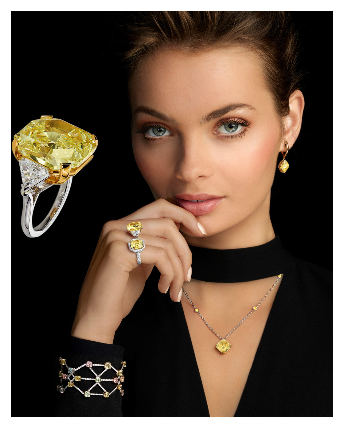 Simply Radiant Pendant. Fancy Yellow, 8.09 cts, on 18K chain embellished with diamonds.