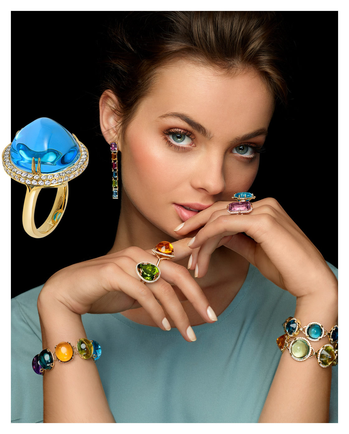 Gossip Earrings. Surprising Collection in Multicolor Earrings in 18K Yellow Gold: six gemstones, with Diamond accents. 14.19 cts.